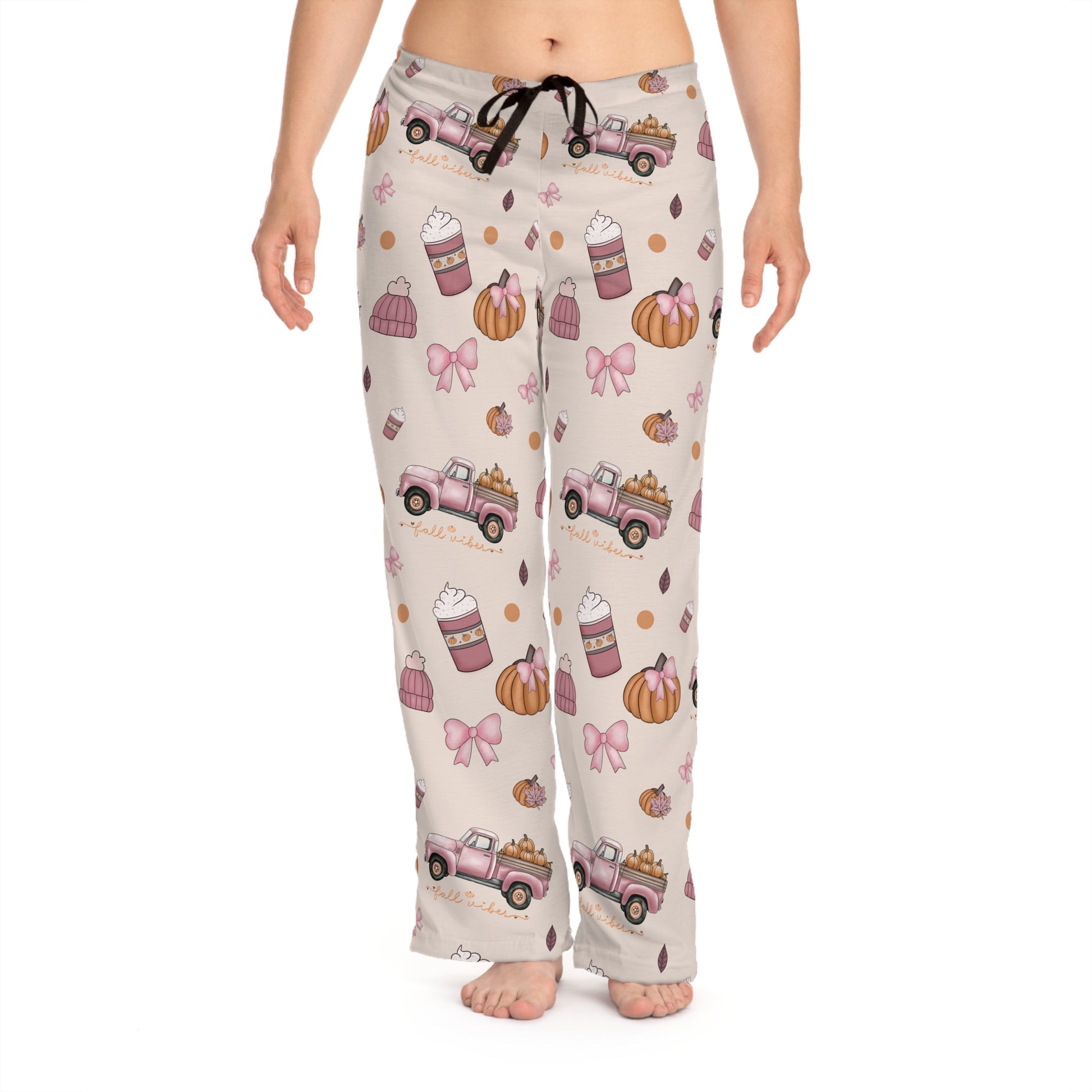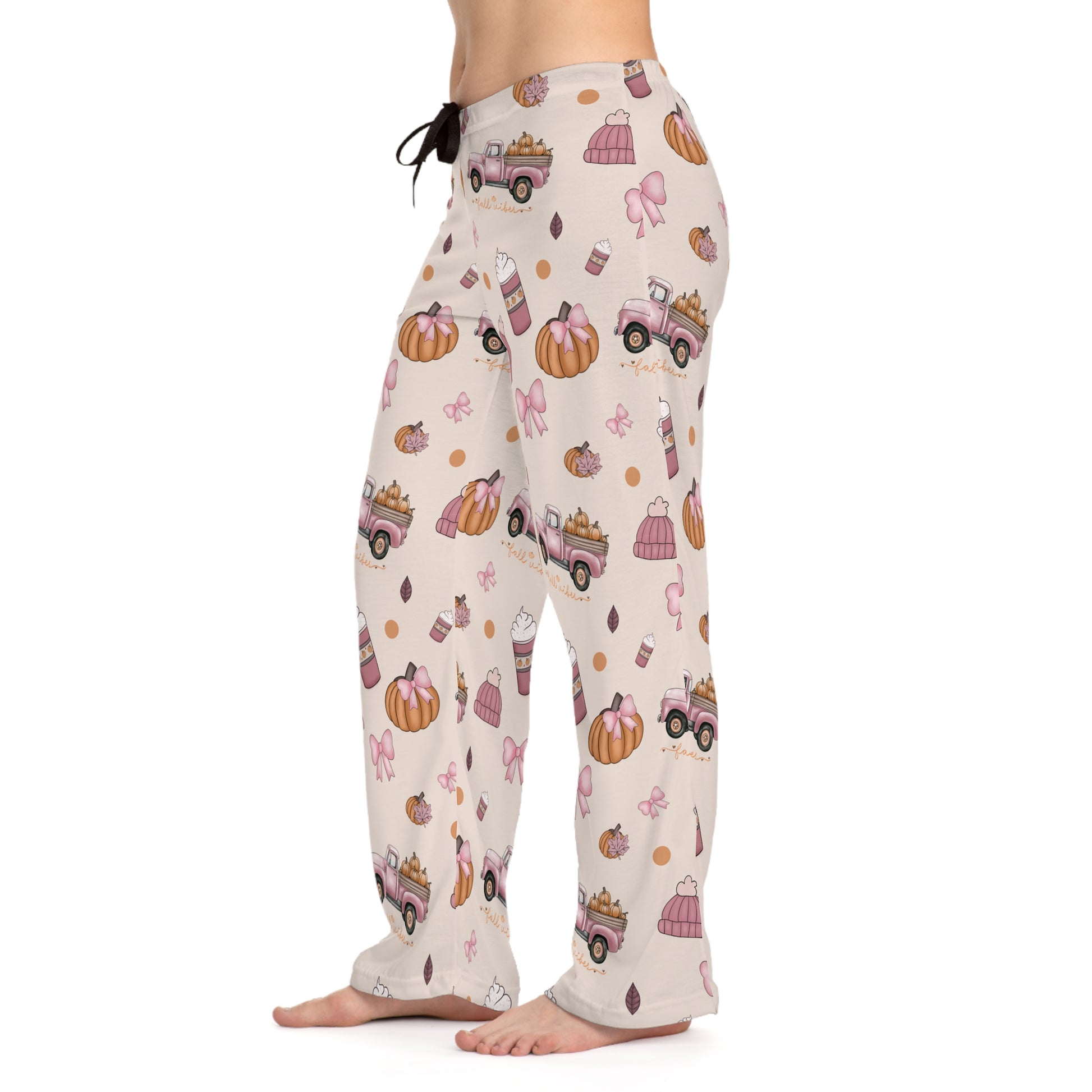 Cozy Women's Pajama Pants with Fall Design, Relaxation, Sleepwear, Gift for Her, Autumn Vibes, hand drawn art