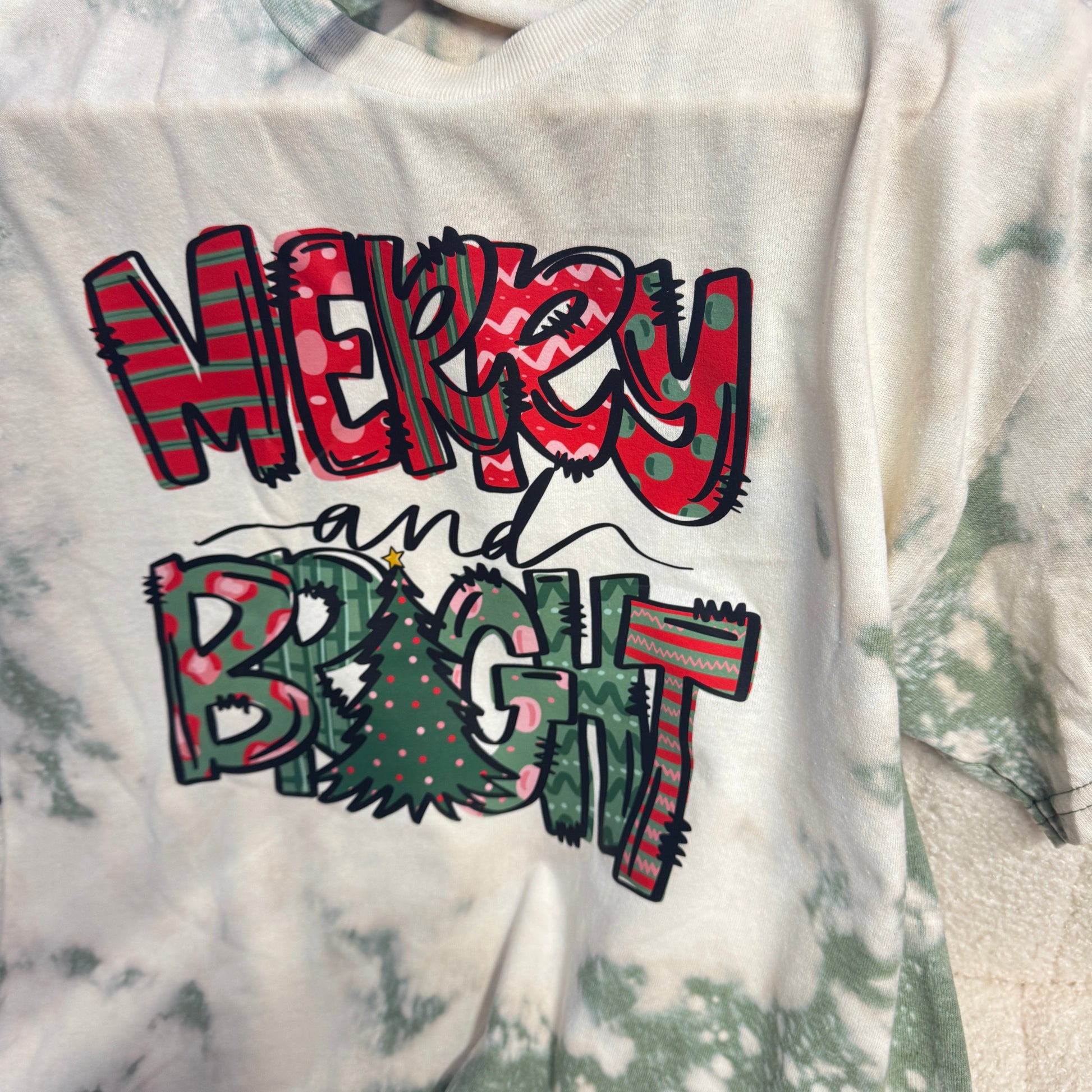 Merry & Bright Tie Dye T Shirt Size Medium