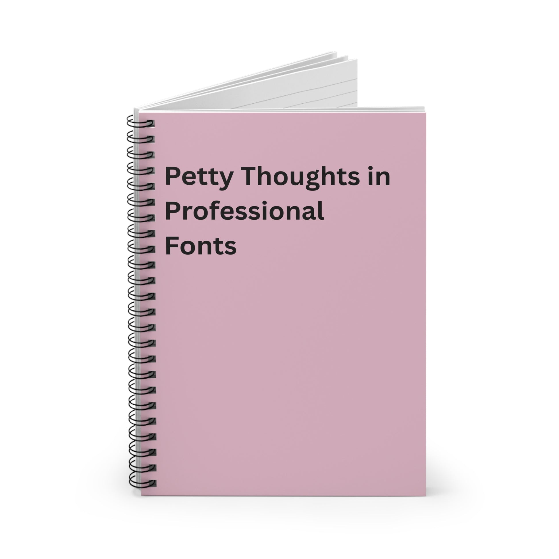 Spiral Notebook — "Petty Thoughts in Professional Fonts" Pink Ruled Journal, Co Worker Gift, Office Humor