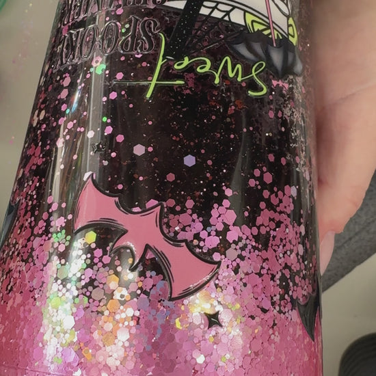 Sweet Spooky Summer Glitter Pink Halloween Style Snowglobe Tumbler